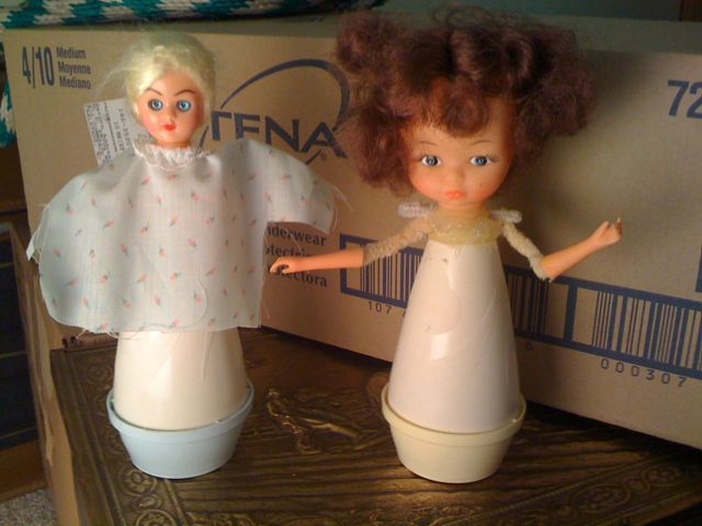 But then you come across some stuff that can only be called bizarre. Like these air freshener dolls. Heads glued to the top, with plastic arms attached to pipe-cleaners. Zuh?!??? I believe “these are the stuff of nightmares” was my initial reaction.