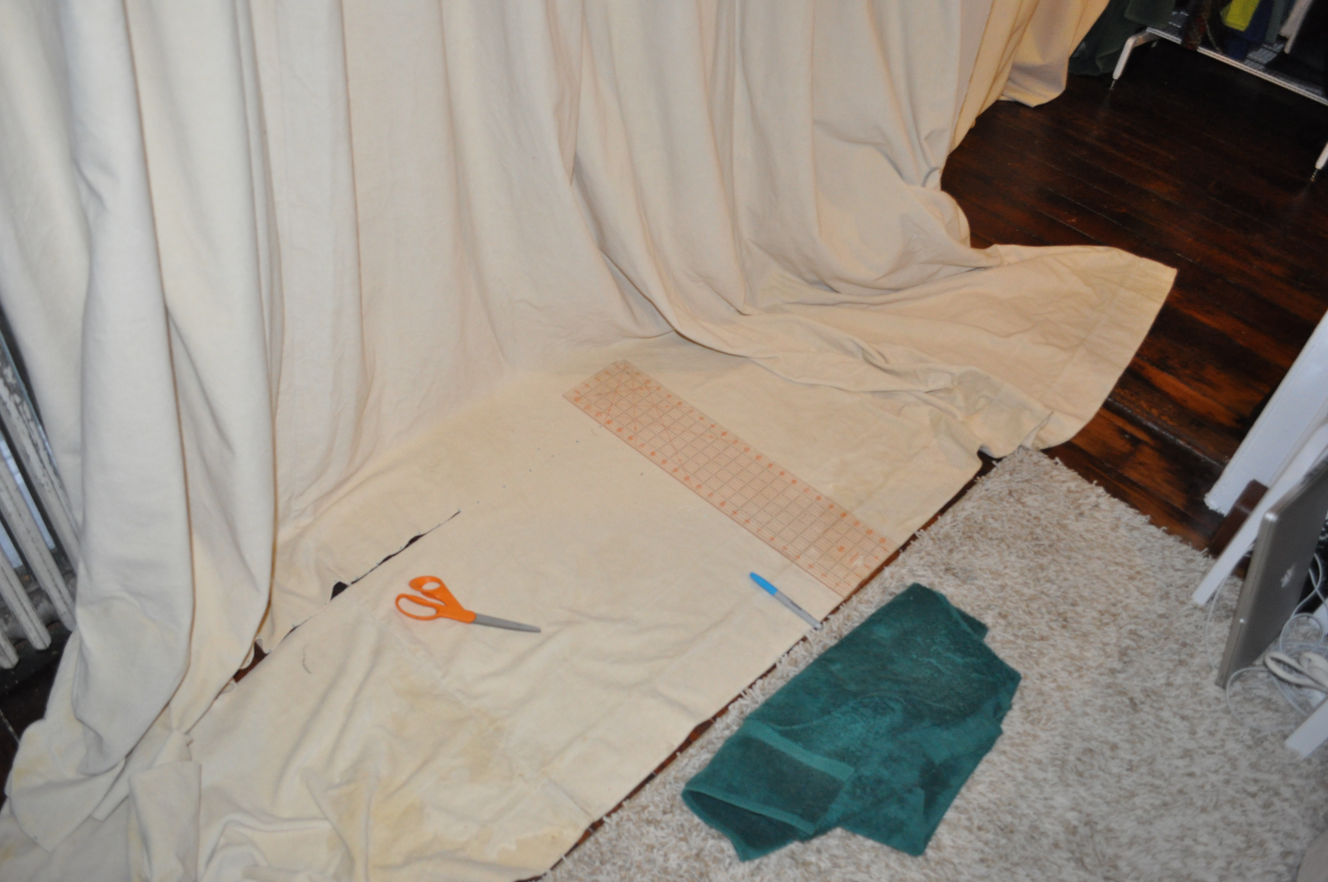 Mom helped get our closet & bedroom organized, then started hemming our curtains.
