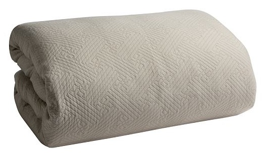 Hey, I like this – the natural coverlet and the yello/teal fabrics…you could easily swap out other pillows to switch up the look too. I’d get the shams too!